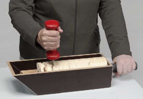 Der "Holzbrikett-Spalter "BriquetBreaker" mit Spalterschütte ist ein neues, patentiertes Werkzeug zum einfachen, gefahrlosen und sauberen Spalten von Holzbriketts.